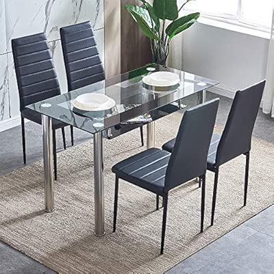Modern Table Set 4 Chair Glass Metal Kitchen Room Leather Home