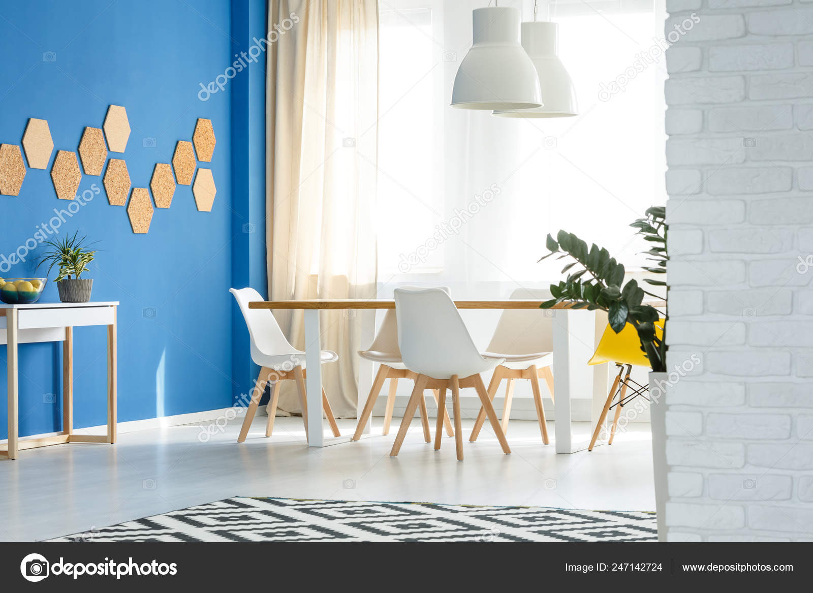 Blue White Yellow Colors Create A Happy Room Dining Room