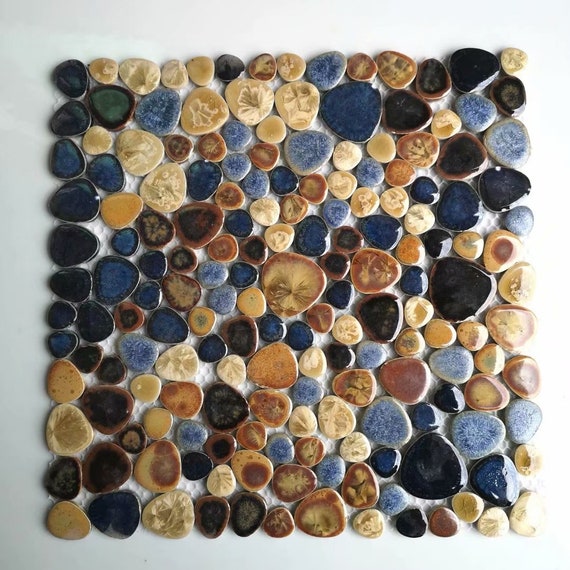 Brown Beige Blue Pebble Porcelain Tile Backsplash Ppmts02 Etsy