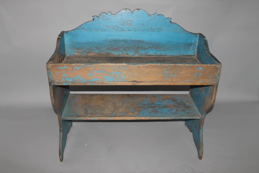 19th C Bucket Bench Dry Sink In Old Blue Paint Jan 22 2017