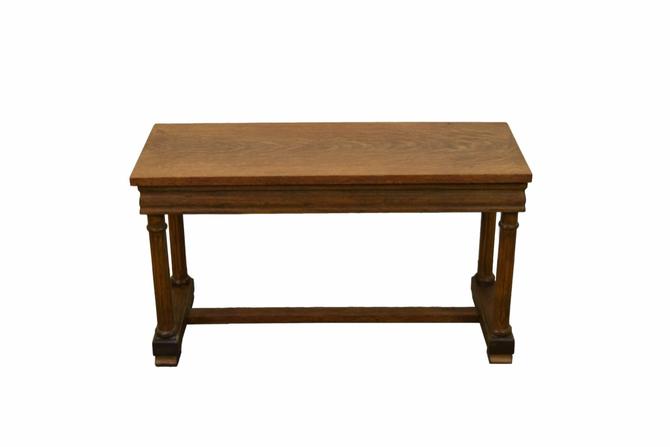 Antique Golden Oak Piano Bench With Neo Classical Fluted Columns