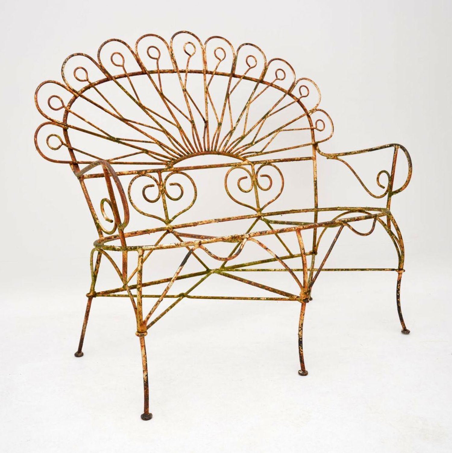 Antique 19thc Victorian Wrought Iron Garden Bench Architectural