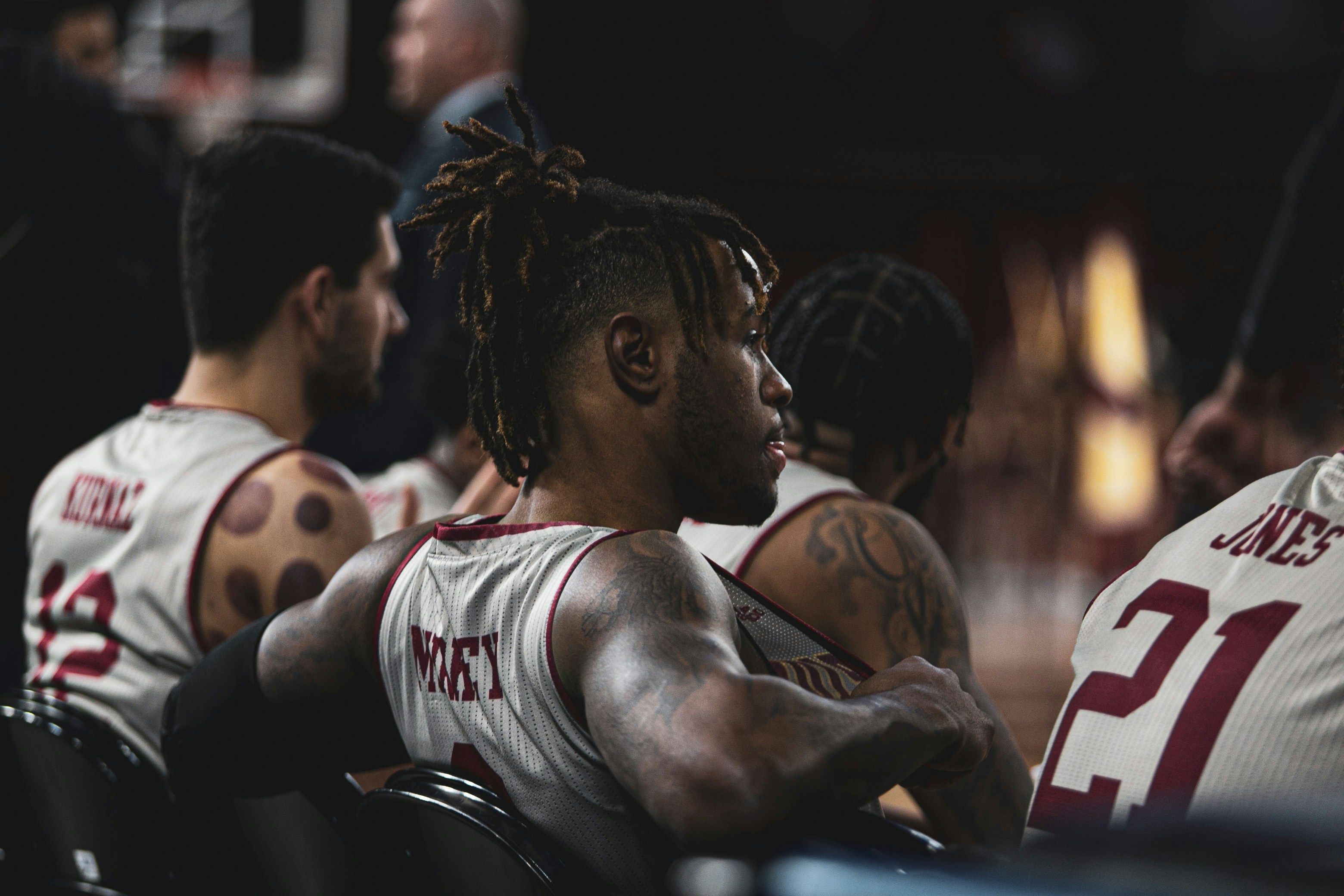 Photography Of Basketball Player Sitting Of Bench Photo Free