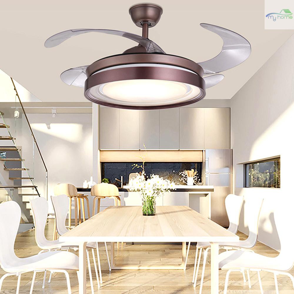 2020 Modern Invisible Blades Ceiling Fans Crystal Retractable Belt