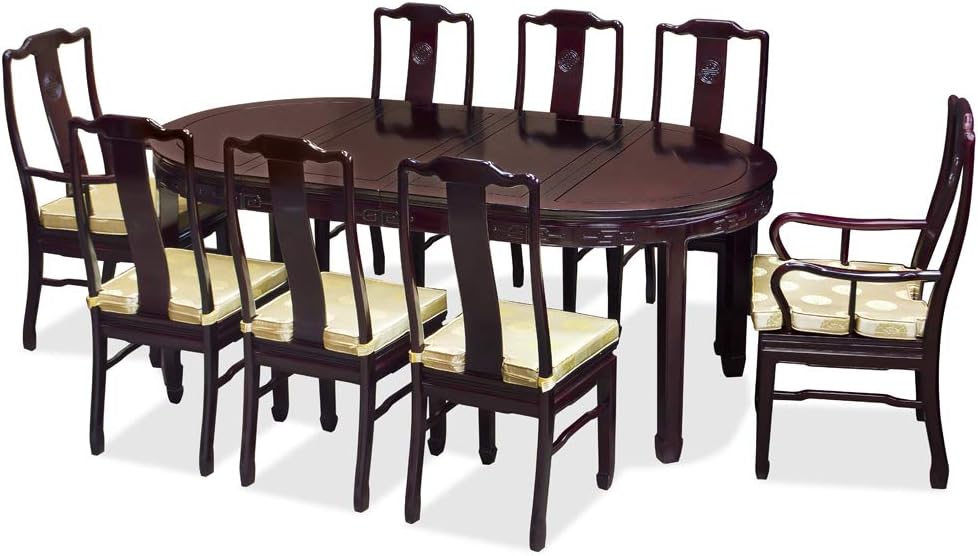 Oval Chinese Dining Table With 8 Chairs Plain Mandarin Design
