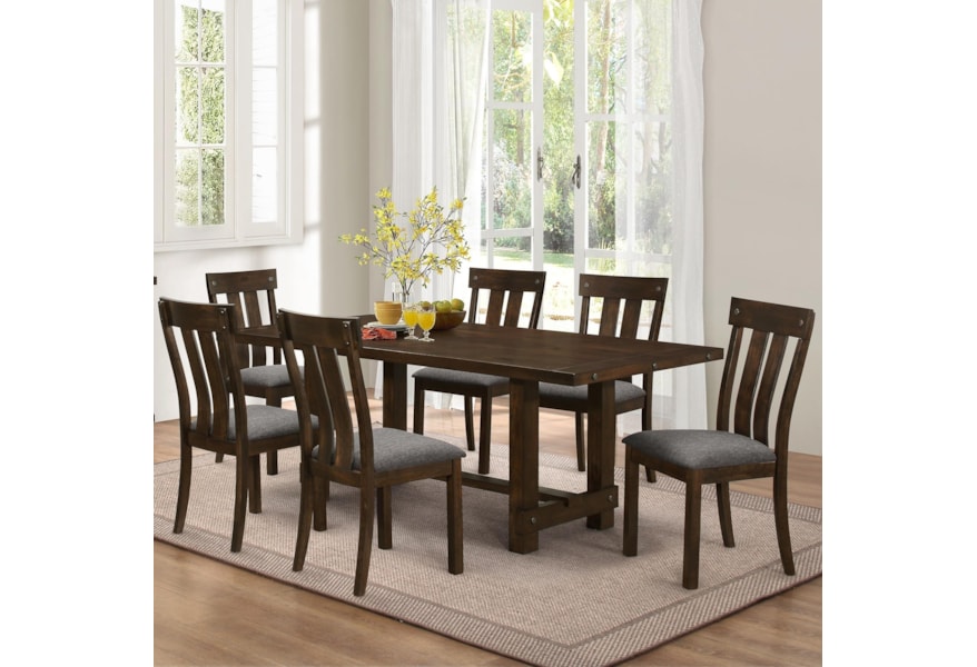 New Classic Frisco 7 Piece Trestle Dining Table With Slat Back