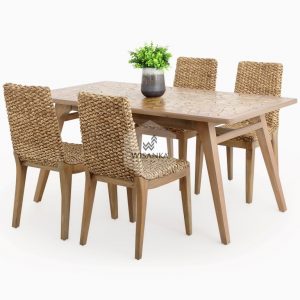 Brown Modern 4 Seater Cane Dining Table Set For Home Hotel