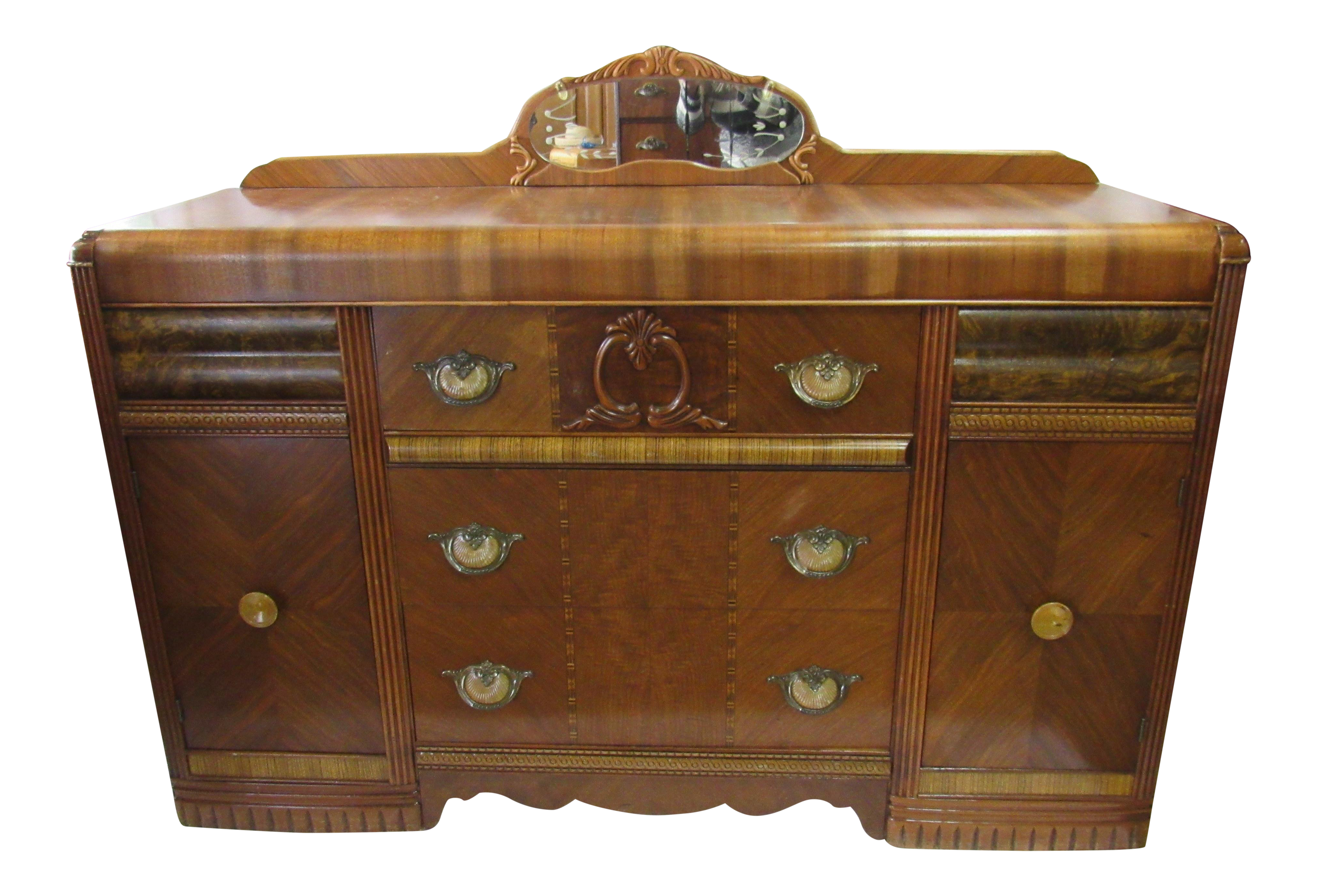 Used Art Deco Antique Waterfall Server Sideboard Vintage