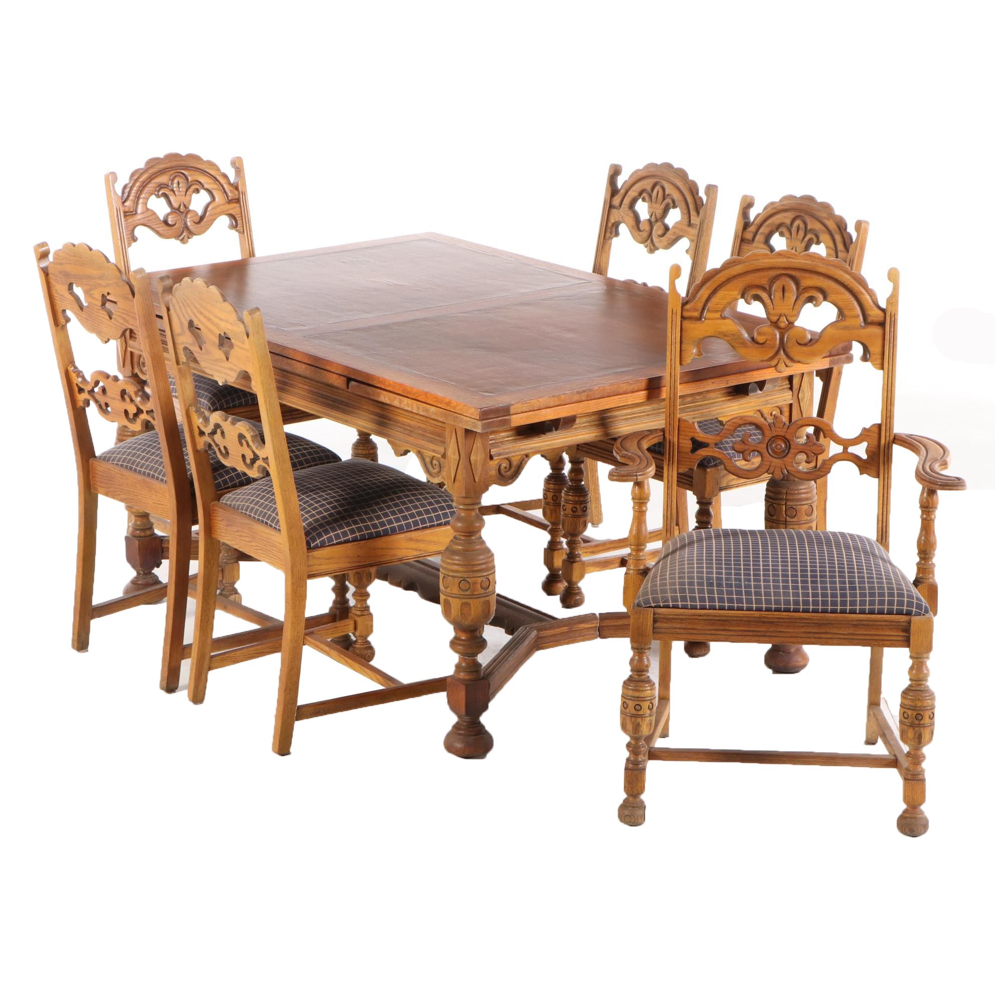 1930 S Jacobean Revival Carved Oak Table Chairs Ebth