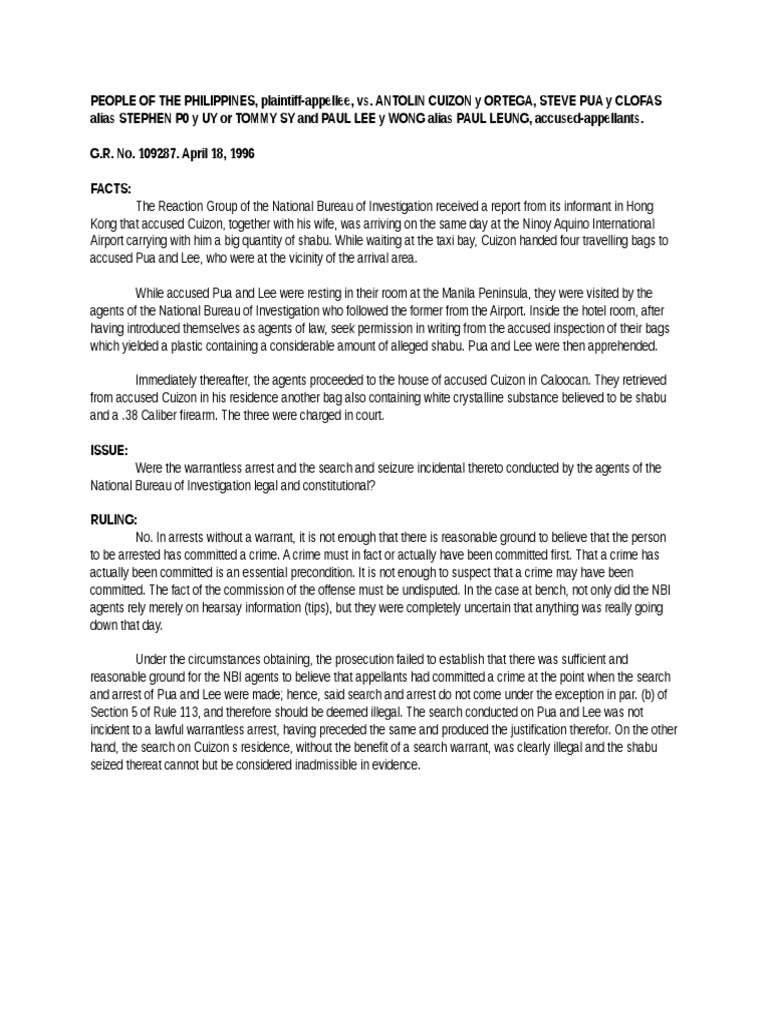 No 11 People V Cuizon Final Docx Search Warrant Search And