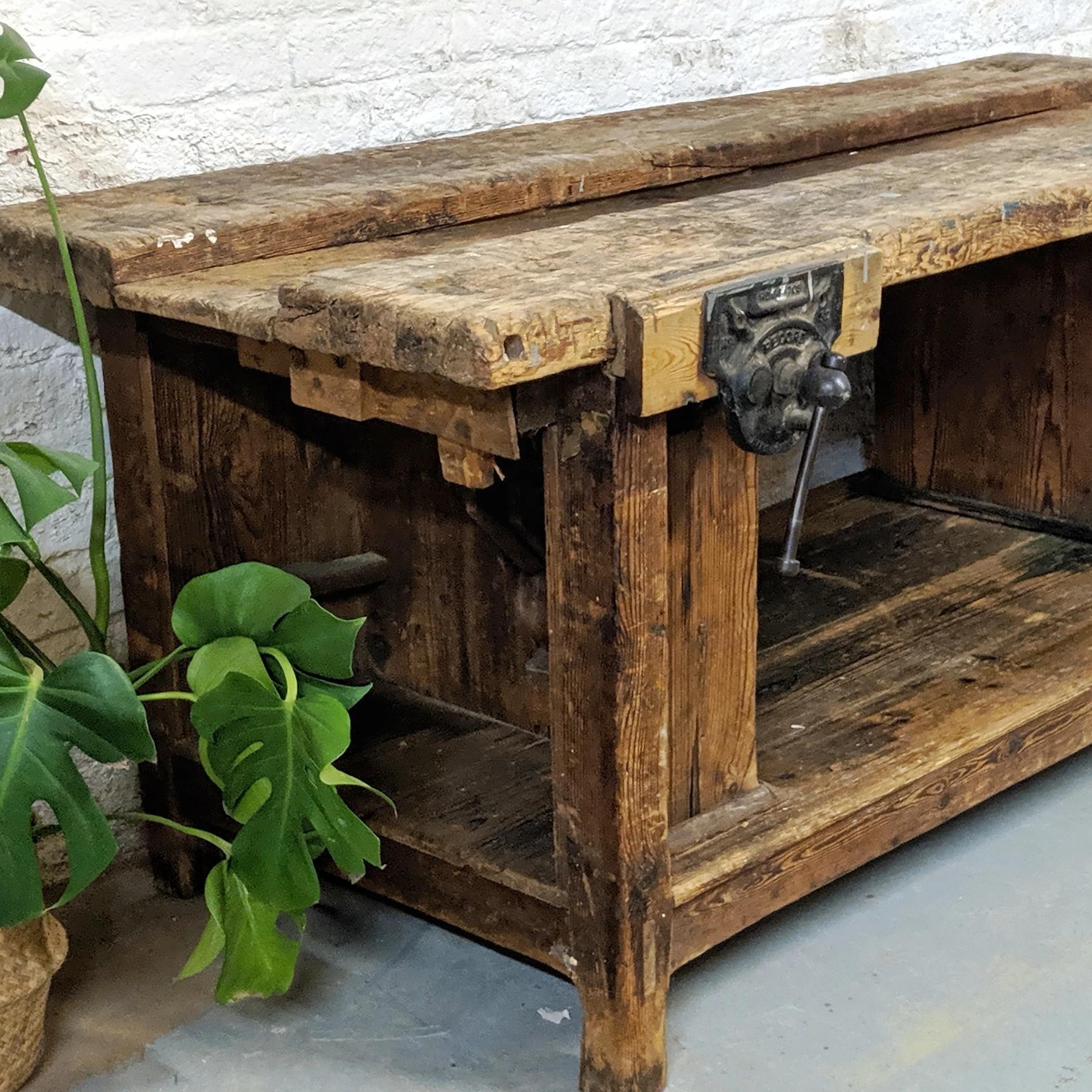Industrial Antique Workbench Wooden Solid Pitch Pine In Rustic