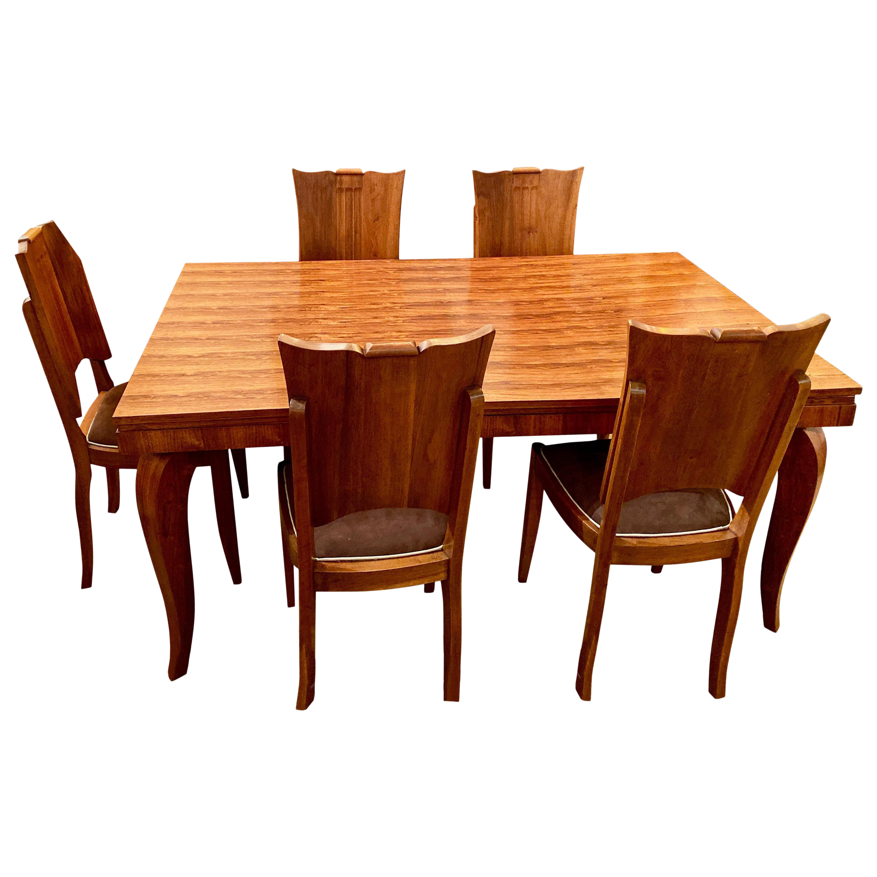 Art Deco Walnut Set With Dining Table And 6 Chairs 1930s For Sale