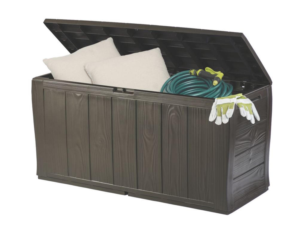 Keter Comfy Wood Effect Plastic Garden Storage Box Departments