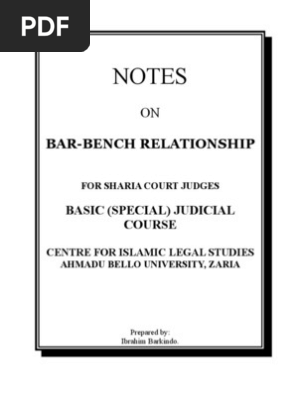 The faith on the judiciary to the general public and the speedy justice mainly depends on the cordial relation between the judges and the advocates and the role of advocates are equally important to the judges in the administration of justice. The course aims at meding sour bar bench relationships in sharia courts. The professional ethics accountancy for lawyers and bar bench relations practical training the history and development of legal profession in india page1 2advocacy profession had its seeds in europe as well as in the east.