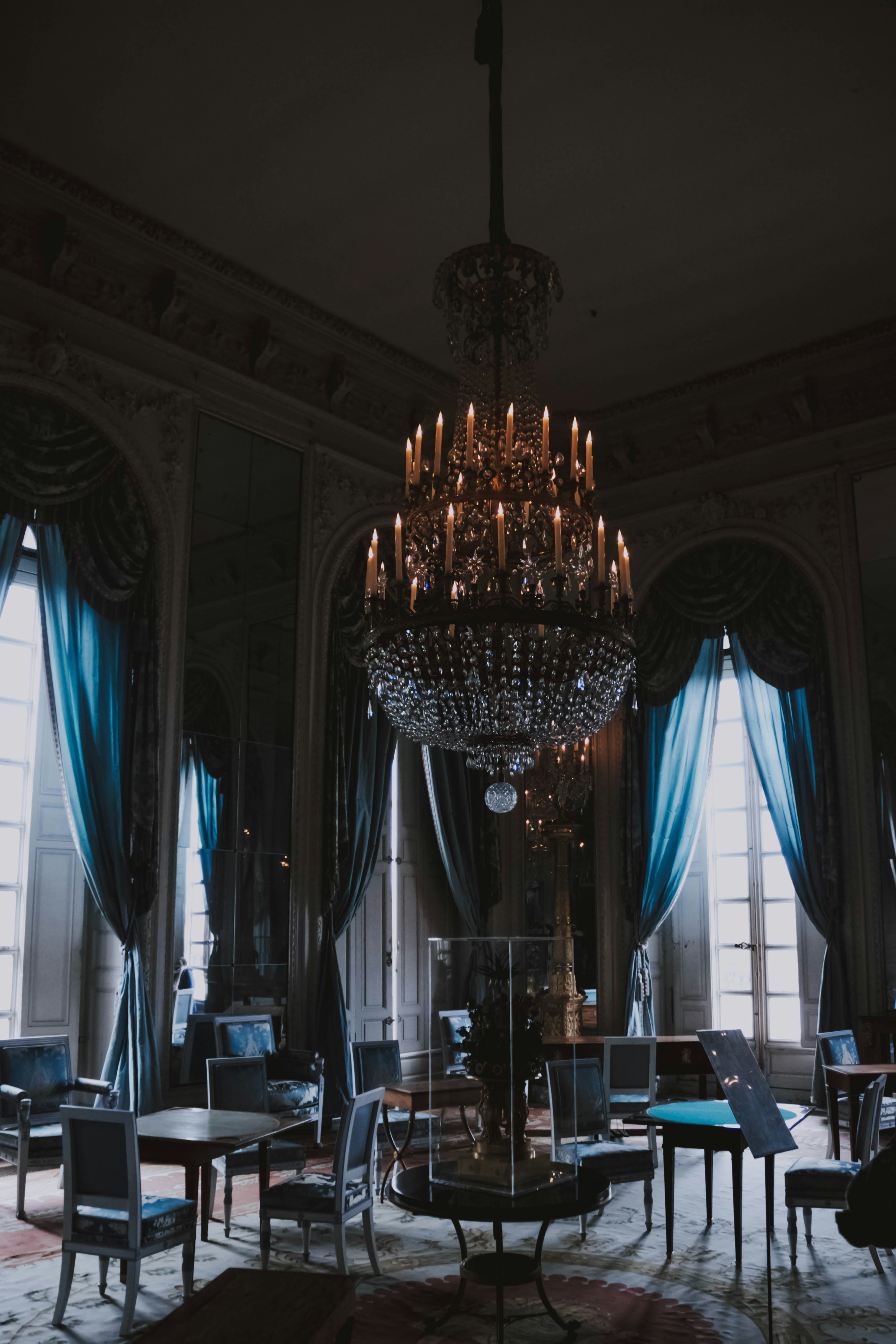 Empty Dining Chairs Under Chandelier Photo Free Furniture Image