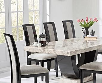 Whether youre curating a modern atmosphere or a grand dining environment we have a dining table sets for your home. Many of our dining chairs match our dining tables and buffets so you can create a complete look in your dining room or mix and match your favourites to suit your style. We also have a range of dining room sets meaning you can find everything for your room in a matching style ensuring your pieces of furniture corresponds with one another.