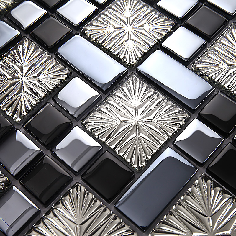 Glass Tiles Black Mosaic Kitchen Backsplash Silver Tiles Mirror