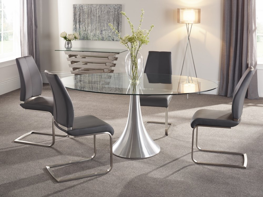 Scala Dining Chair In Grey Pu With Brushed Stainless Steel Legs