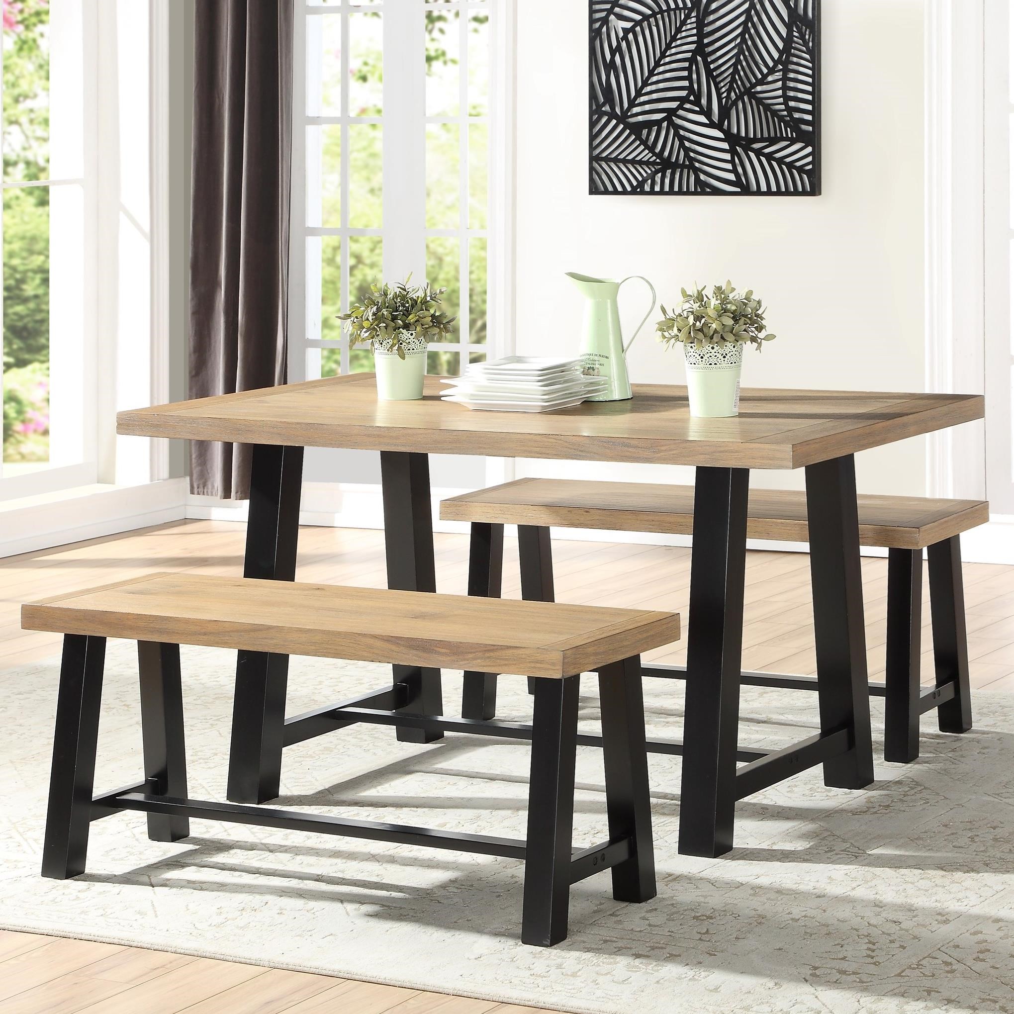 Steve Silver Burnell Farmhouse Dining Table Set With 2 Benches