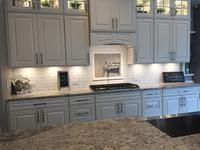 Pewter Ceramic Subway Tile Backsplash Contemporary Kitchen