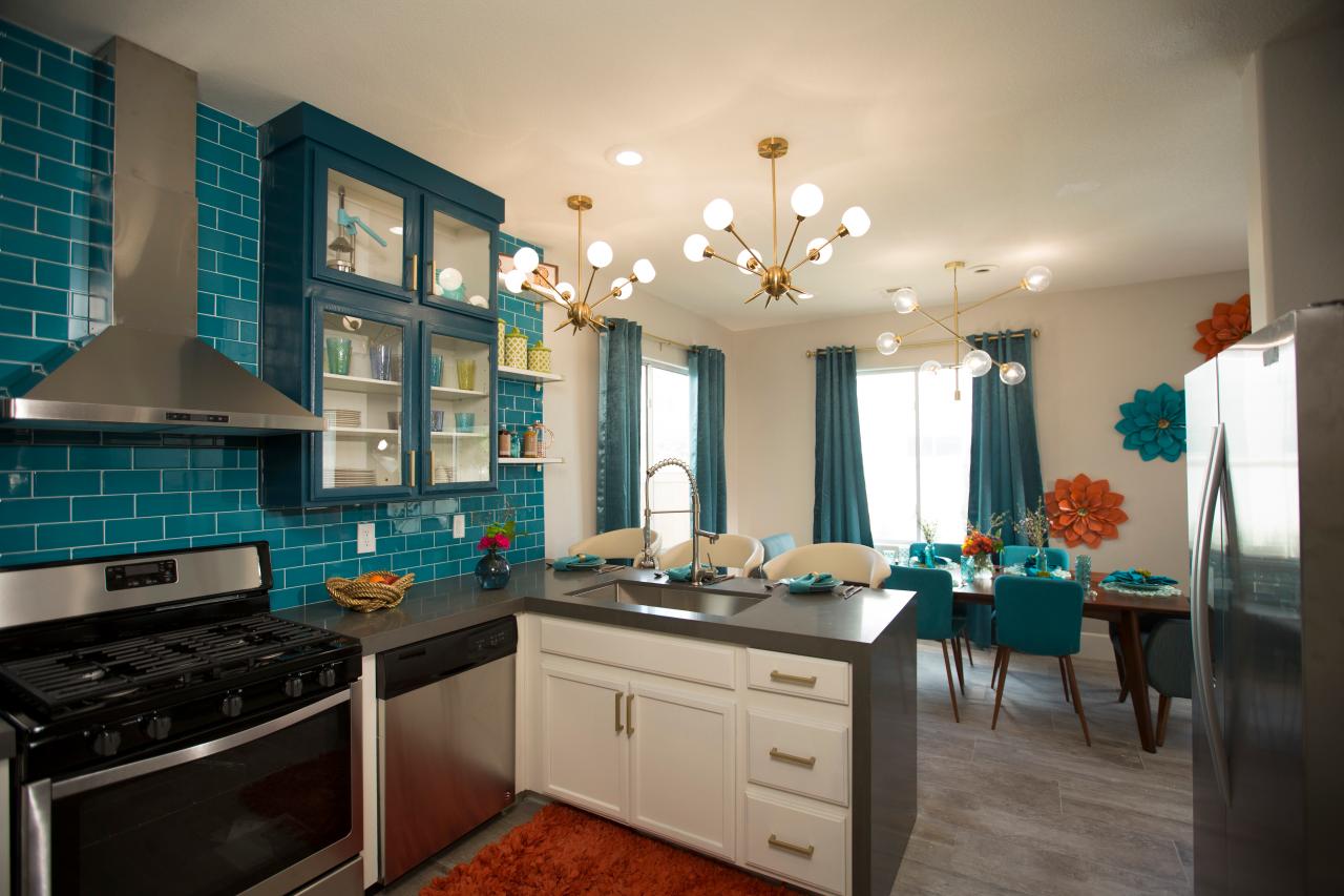 Modern Blue Kitchen With Blue Subway Tile Backsplash Hgtv