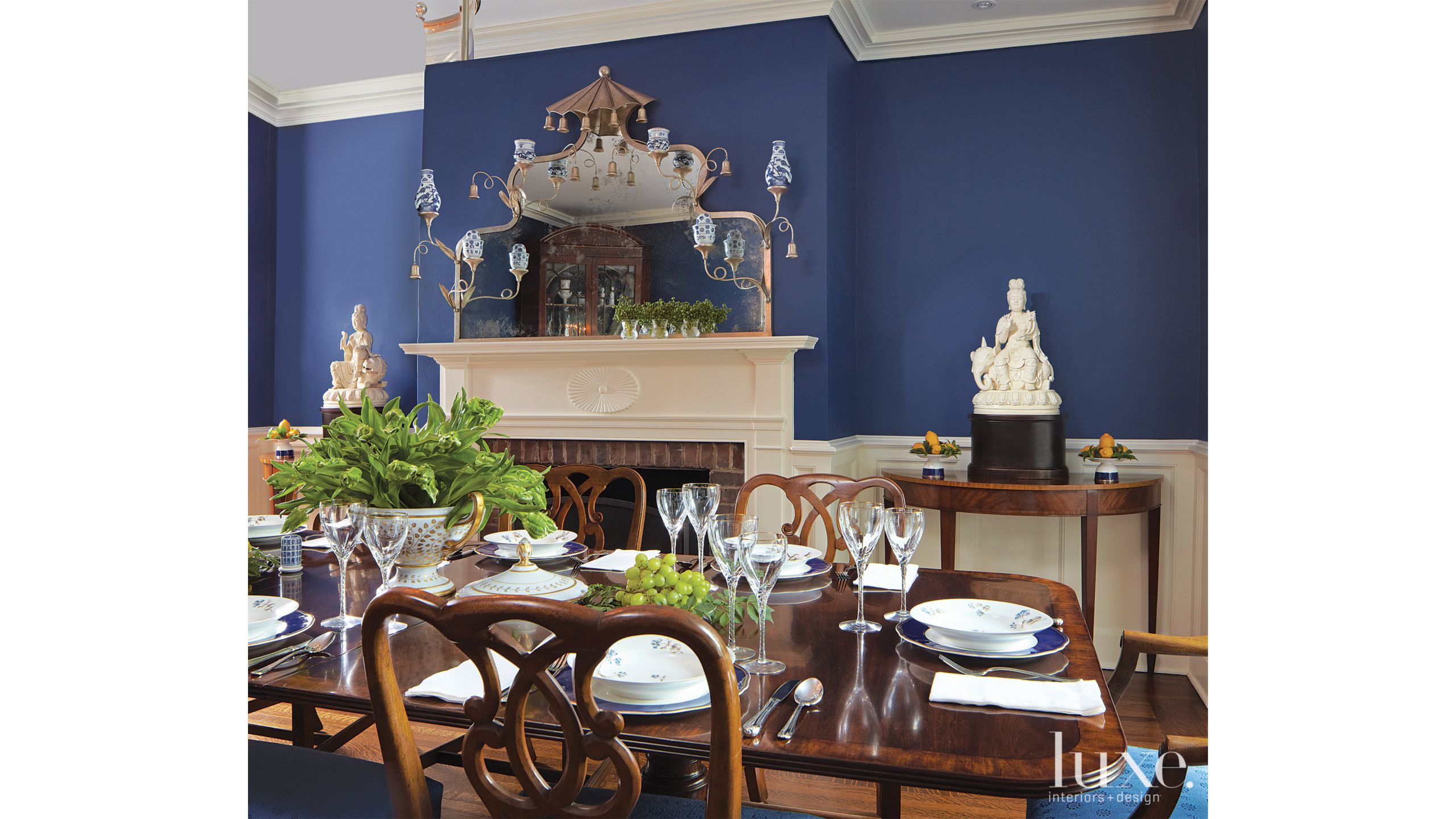 Traditional Blue Dining Room With Wainscoting Luxe Interiors